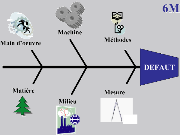 On place une sorte d'arbre ou d'arrête de poisson, chaque branche étant un des 6 M. Le tronc allant vers le dysfonctionnement que l'on souhaite éliminer.
