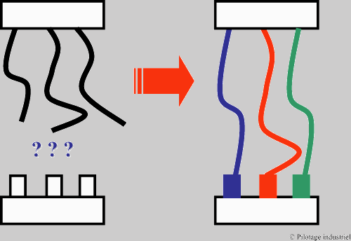 - Un peu caricatural, alors voici un autre exemple : certains équipements fonctionnent avec des vérins. A ces vérins arrivent différents tuyaux amenant l'air comprimé. Si pour une raison particulière (entretien, panne,..) on démonte la machine, au remontage il faut remonter le bon tuyau sur le bon vérin ce qui peut être source d'erreur. on peut alors mettre des couleurs ou mieux des formes différentes sur chaque tuyau pour éviter les erreurs.