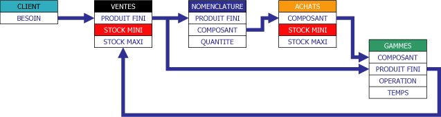 • Définir un stock mini qui déclenche la production (calcul par kanban)