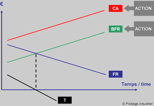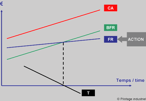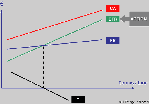Le Chiffre d'affaires (CA) augmente plus vite que le Fond de Roulement (FR). Il faut donc agir sur le FR pour financer votre croissance. Cette crise n'est pas très grave et peut facilement être éradiquée par le déploiement d'un management Lean.