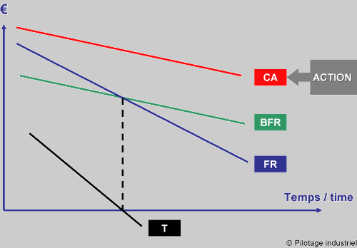 CA : Chiffre d'affaires ; BFR : Besoin en Fond de Roulement ; FR : Fond de Roulement ; T : Trésorerie